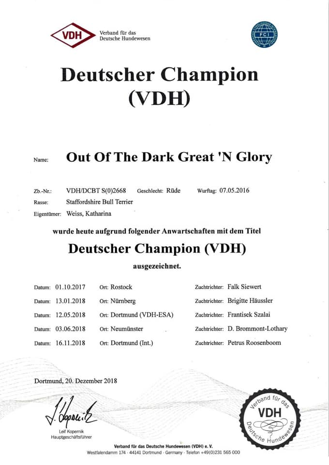 Wir freuen uns sehr, das unser Darko nun auch noch offizieller “Deutscher Champion” ist!