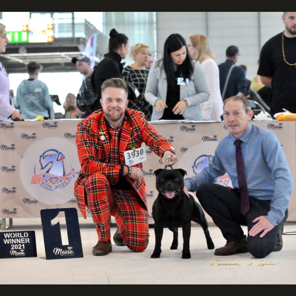 I am Legend Great ‘n Glory (bereits Champion in 7 Ländern) wurde auf der World Dog Show in Brno zum schönsten Staffordshire Bull Terrier der Welt auserwählt von 191 Mitbewerbern. Er ist nun World Winner und auch Best of Breed. Aus der ganzen Welt reisten die schönsten Vertreter der Rasse an, um sich dem prestigeträchtigsten Wettbewerb zu stellen. Wir möchten uns herzlich bedanken bei dem Richter und Rasse-Spezialisten Dave Manito aus England, dem Heimatland des Staffordshire Bull Terriers, für seine hohe Meinung über meinen Rüden Jaxx.